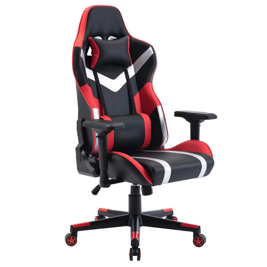 كرسي ألعاب وكمبيوتر جيمنج قابل للتعديل من جلد البولي يوريثان بتصميم مريح ودعم لمنطقة أسفل الظهر مع ظهر عالي وأذرع ومسند رأس MS-02259